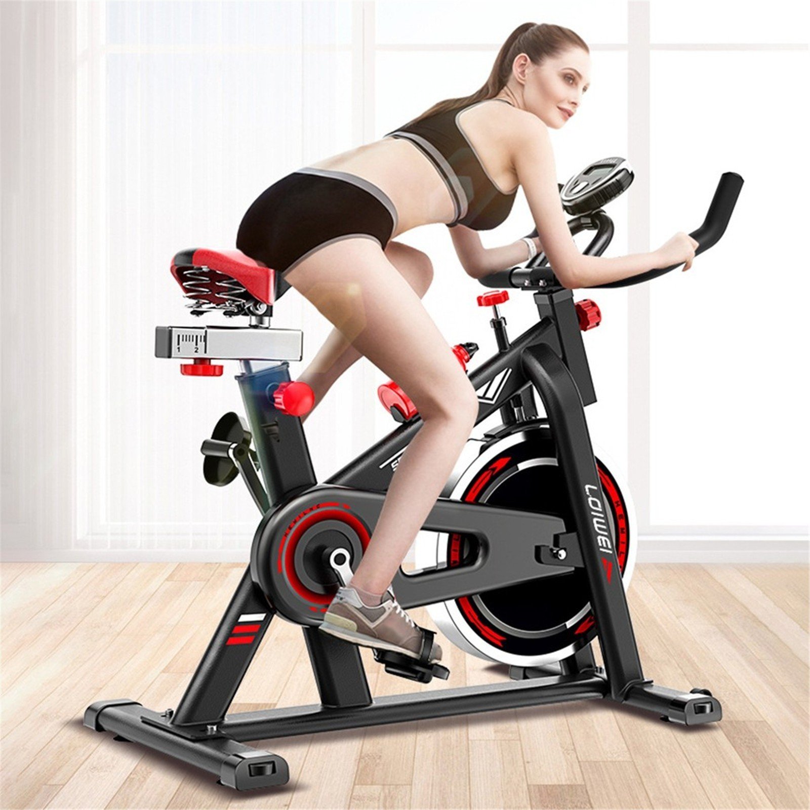 handlebars and adjustable seats, this indoor cycling bike is suitable for