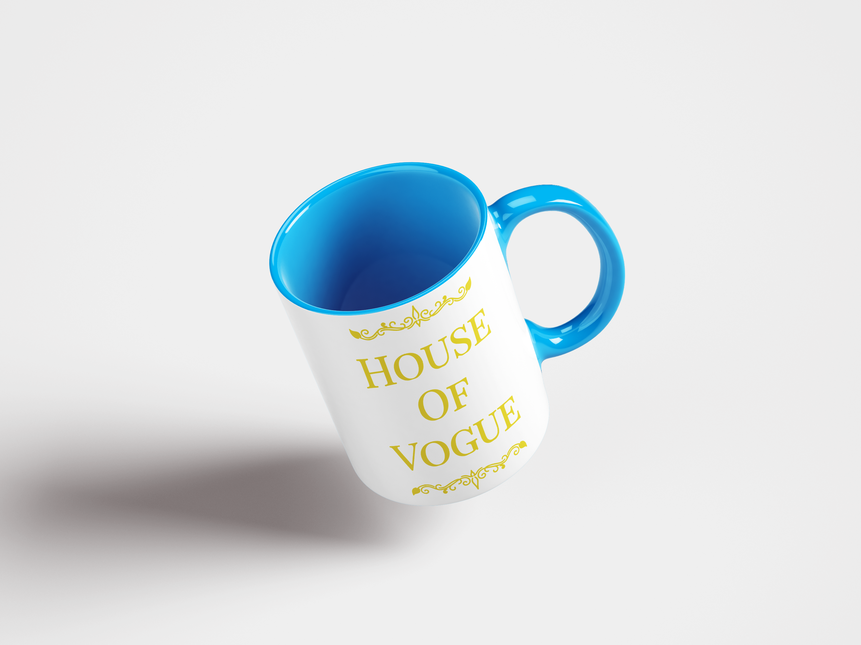 HOUSE OF VOGUE MUG. Add a splash of color to your morning coffee or tea ritual! These ceramic mugs not only have a beautiful design on them. They have also a colorful rim, handle, and inside, so the mug is bound to spice up your mug rack.