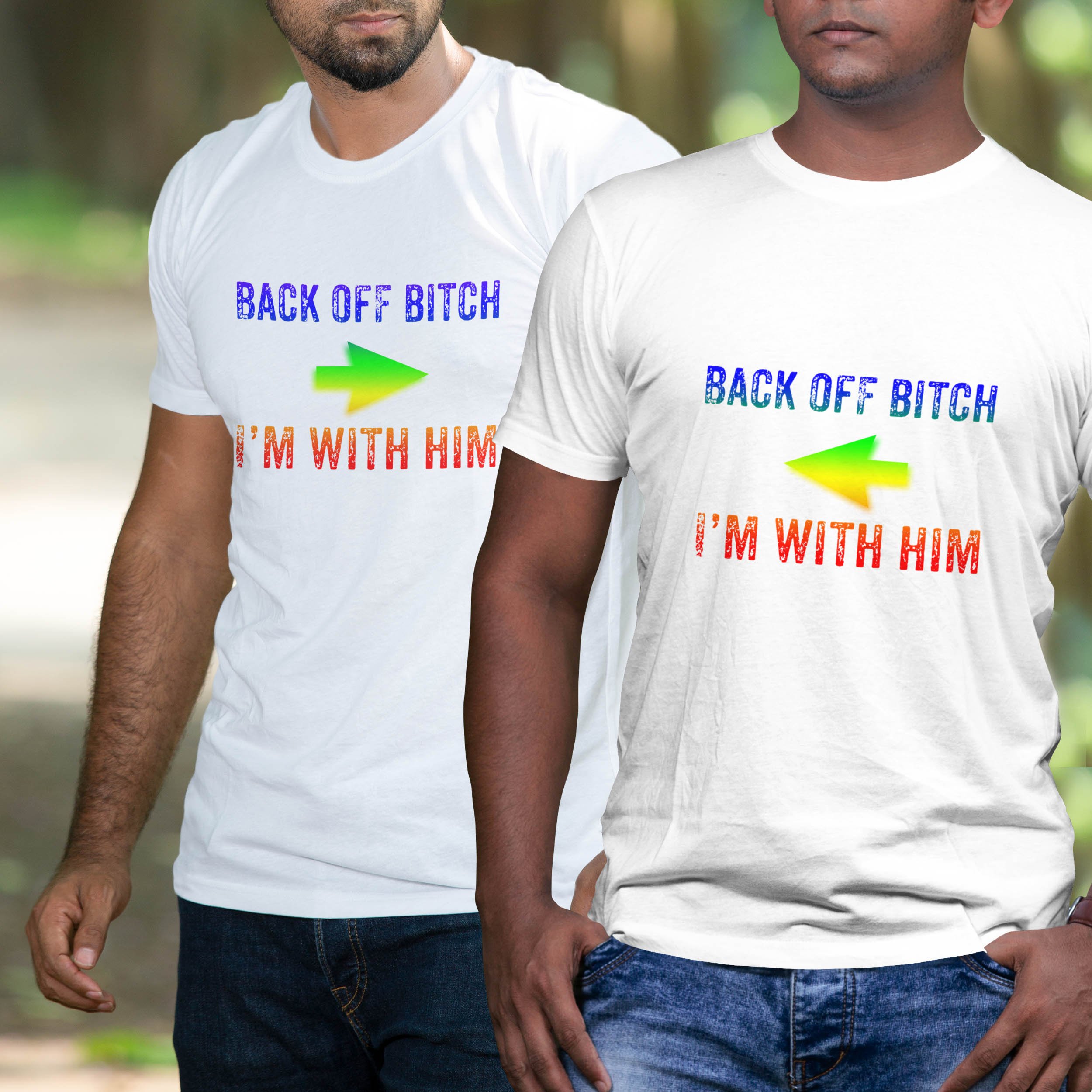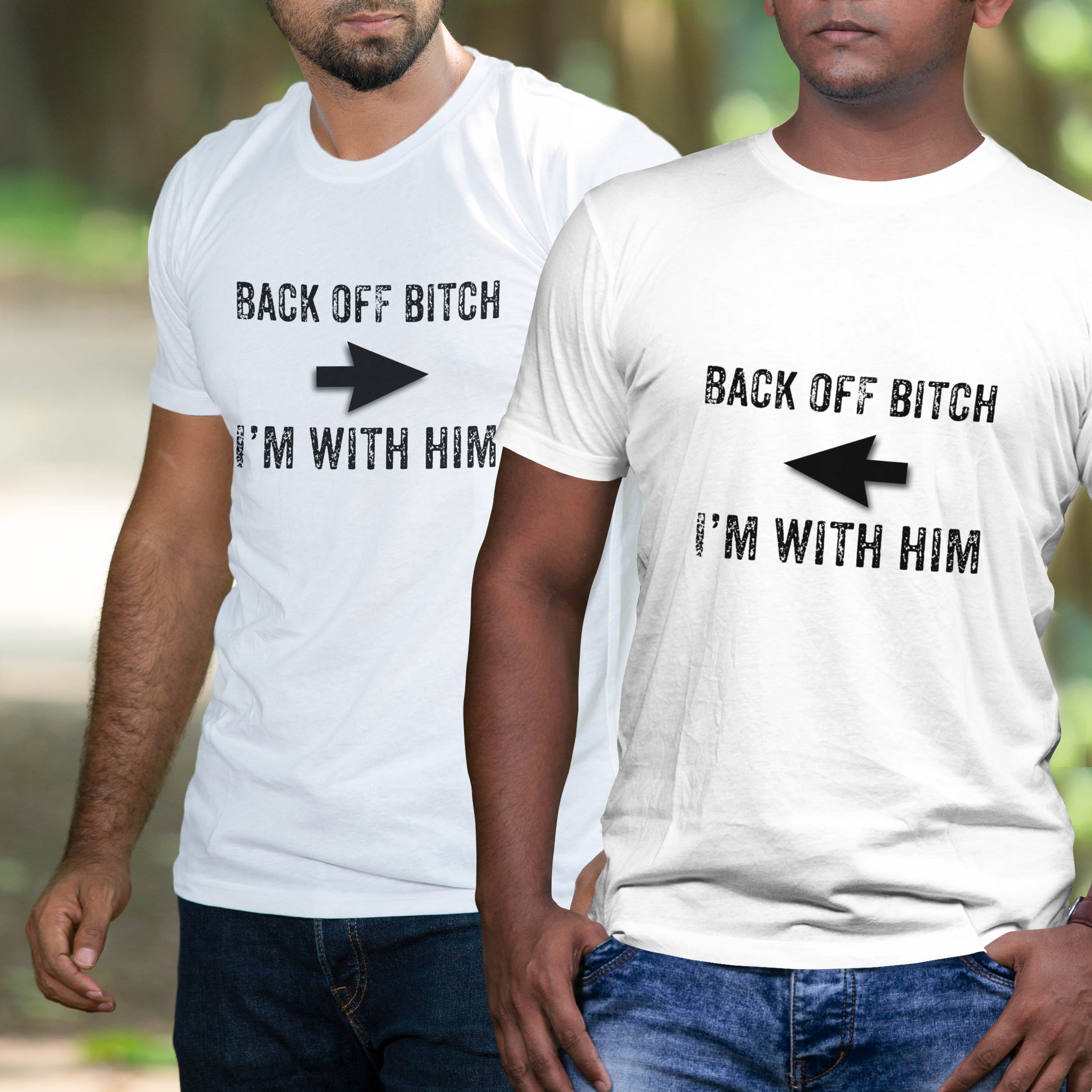 Perfect for everyday wear. Simply wear as is. I’m with him T-shirt is available in white color. Shirt is 5.3 oz, and is a classic, customer-favorite.
