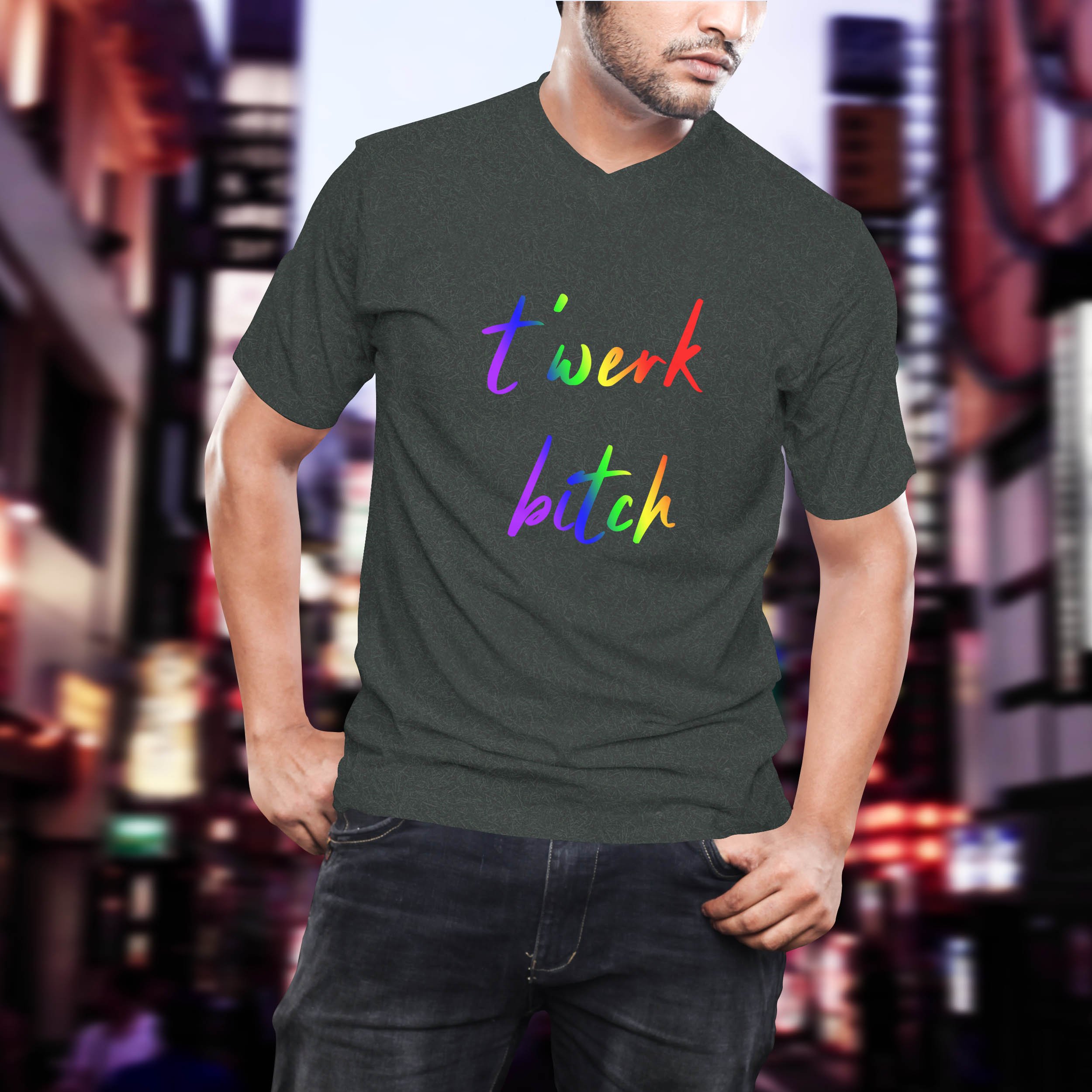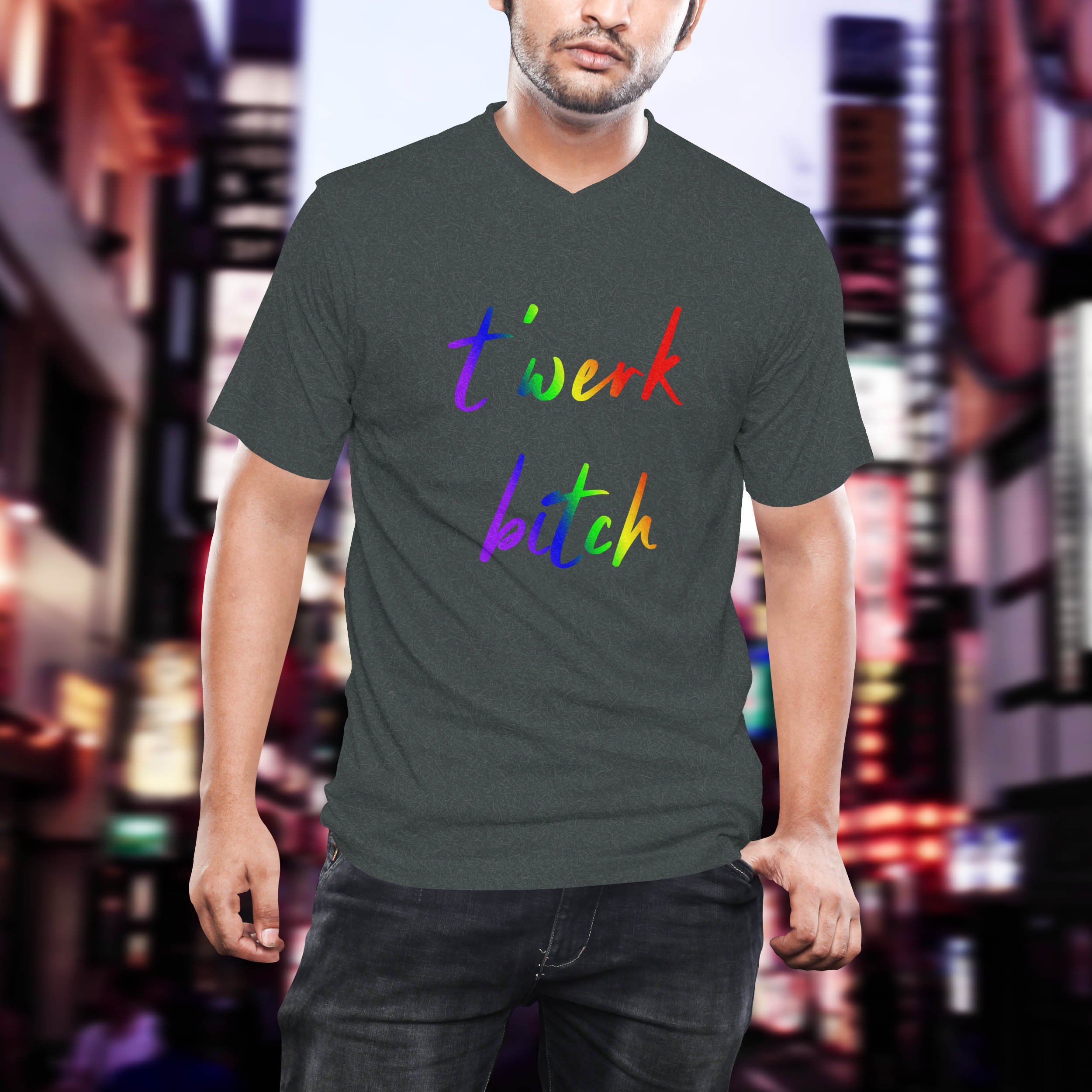 T’werk V-neck T-shirt. The v-neck t-shirt is a fashion forward favorite among men and women. The “T’werk” is a trendy, retail-fit tee that is made of soft, 4.2 oz of combed ringspun cotton. Available in polyester heather blends. Shirt is an amazing, made using unisex sizing and side-seams & shoulder taping for added structure. The ideal shirt for women’s and men’s v-neck t-shirts. The “T’werk” T-Shirt is where it’s at. Buy now! Other collections