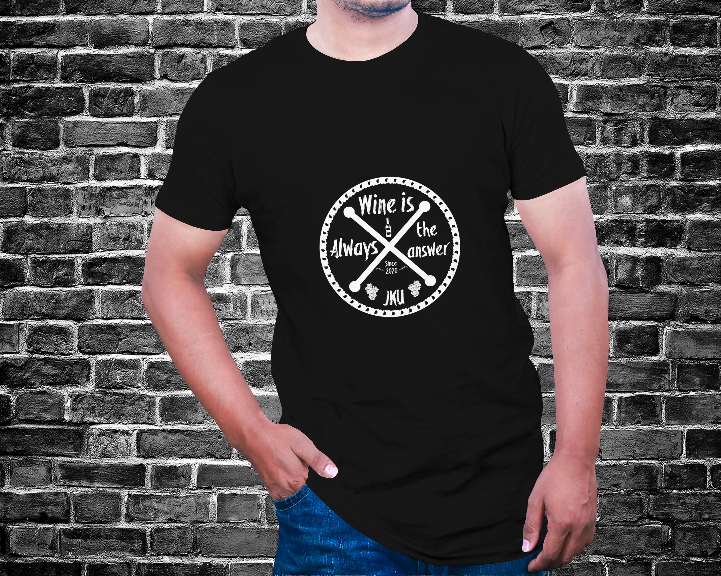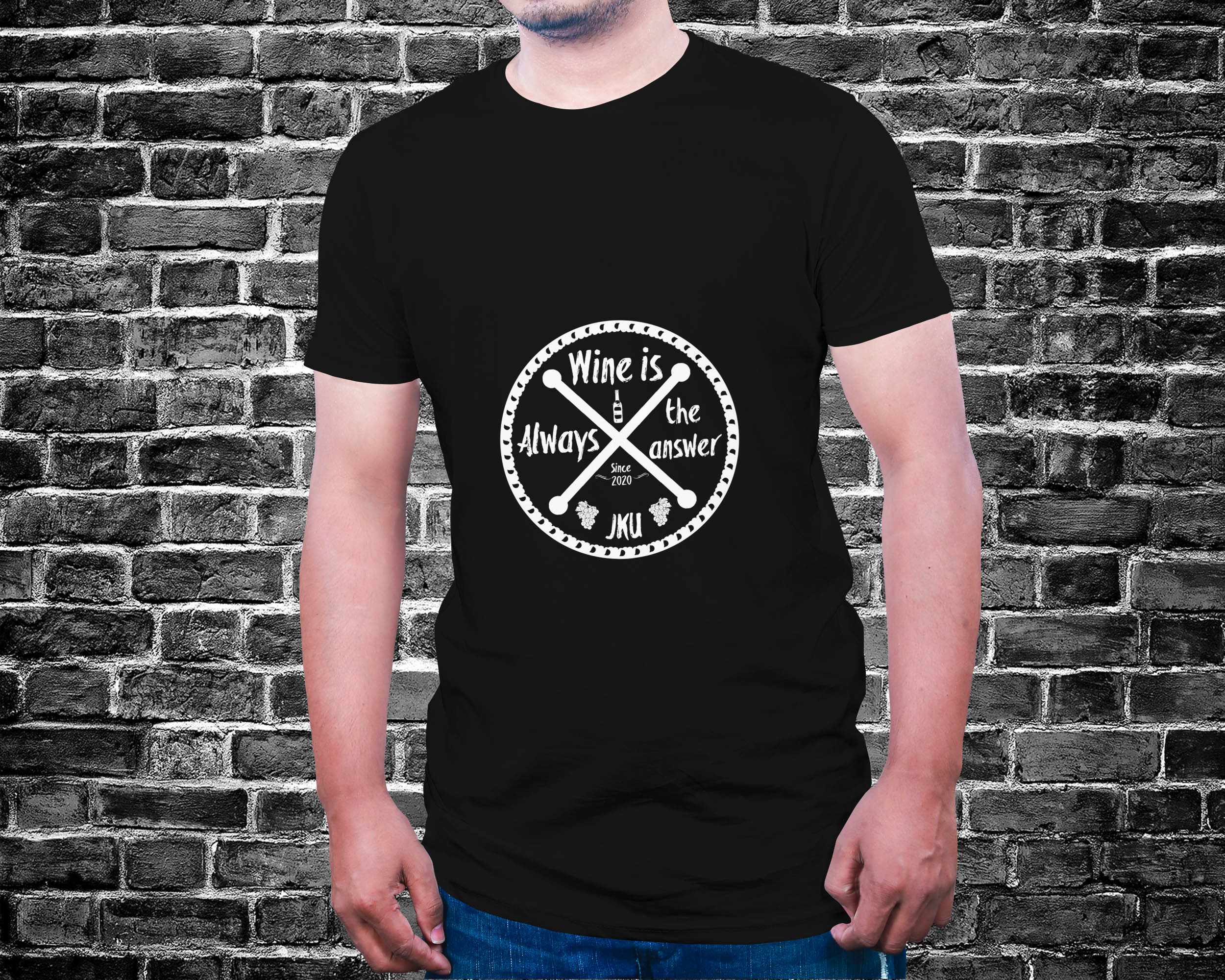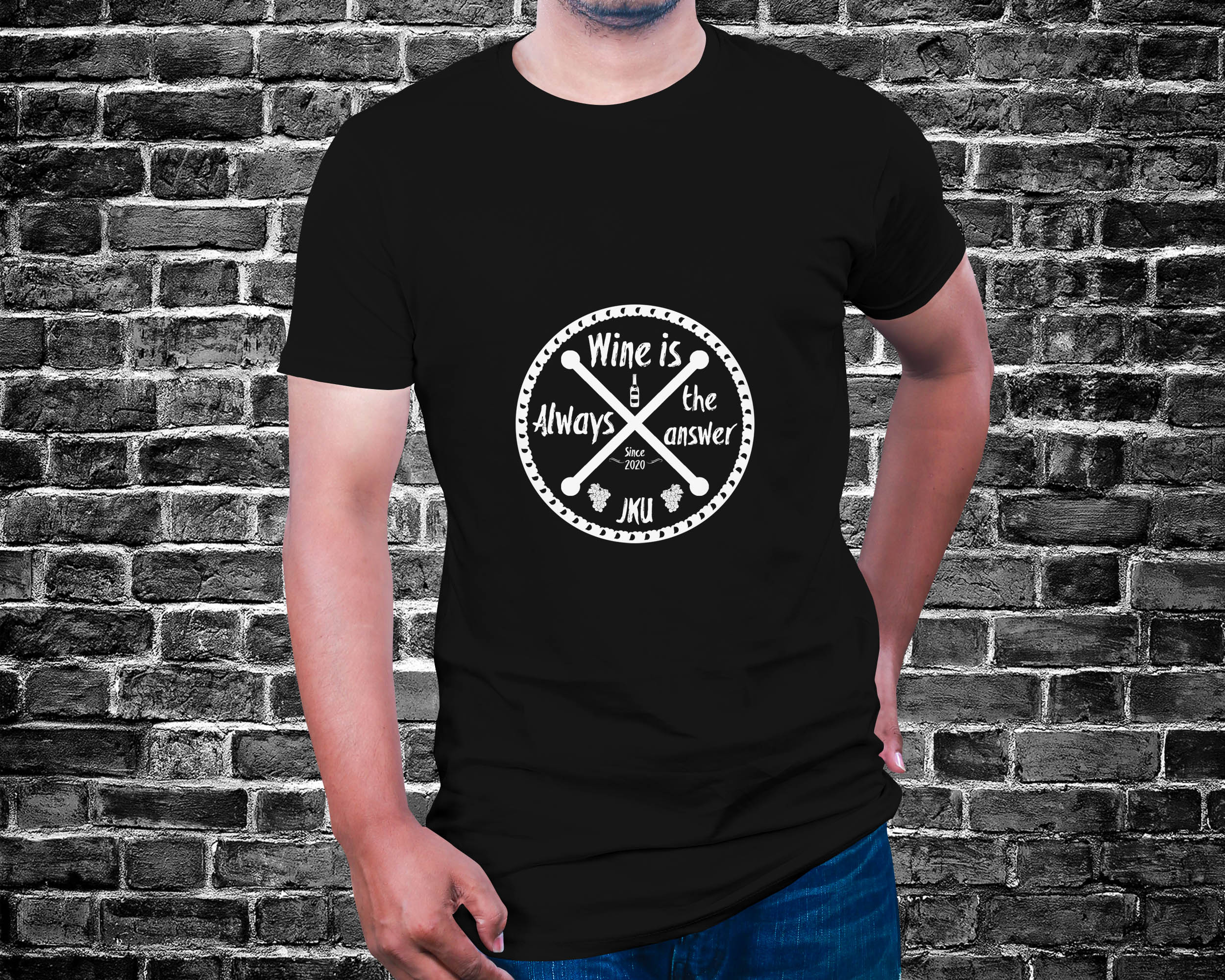 Wine in answer JKU T-shirt. Our new shirt, t-shirt is true as they come.